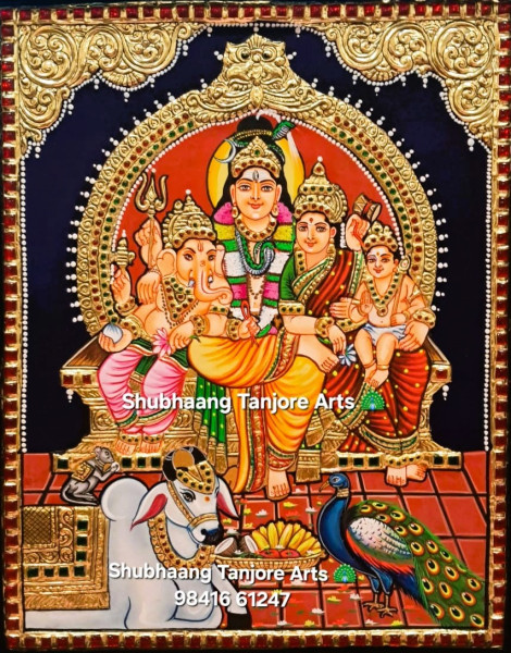 Lord Shiva with his divine family—Goddess Parvati, Lord Ganesha, and Lord Murugan—embodies perfect harmony, love, and spiritual balance. Together, they represent strength, wisdom, compassion, and prosperity, guiding devotees toward righteous living, symbol of devotion, family unity.